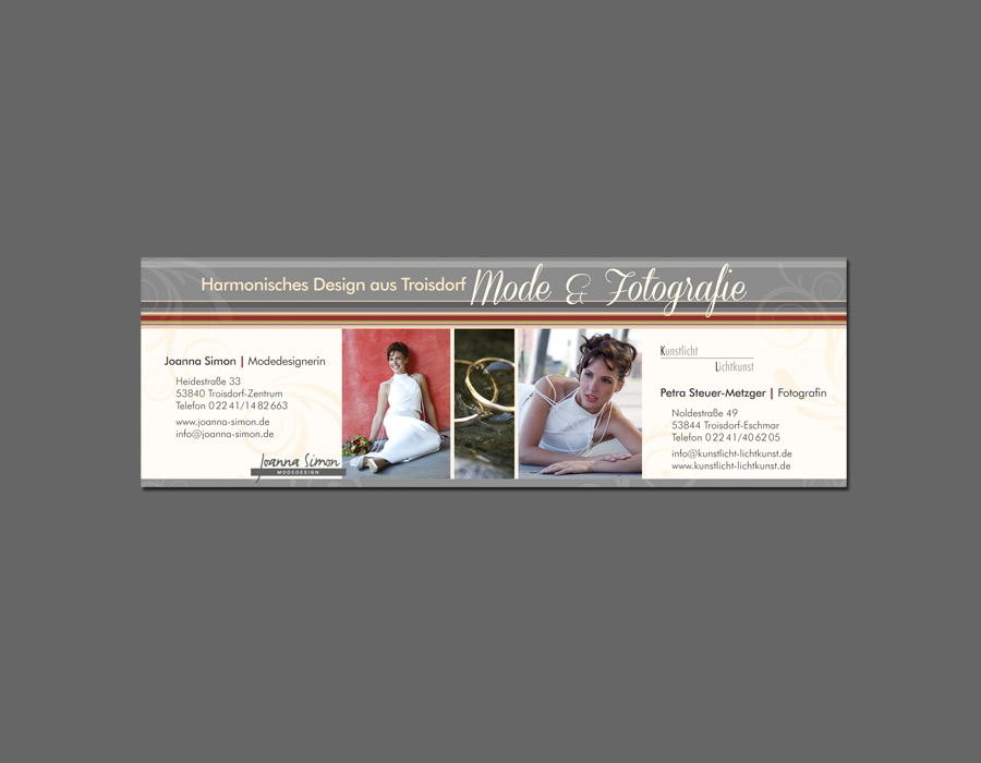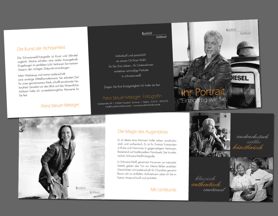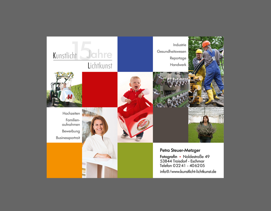 Von der Visitenkarte, Briefpapier über Postkarten, Banner und Broschüren entwerfe ich Ihnen Ihr ganz individuelles Produkt.